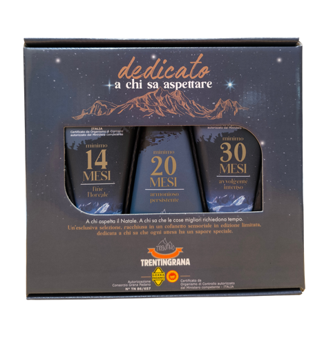 Tris di spicchi da 250 g di Trentingrana nelle stagionature 14, 20 e 30 mesi - edizione limitata di Natale