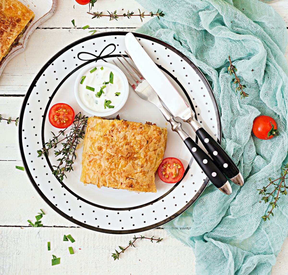Arrotola la sfoglia e spennella la parte superiore con il tuorlo d’uovo sbattuto. - Inforna a 200° per circa 20-25 minuti e buon appetito!